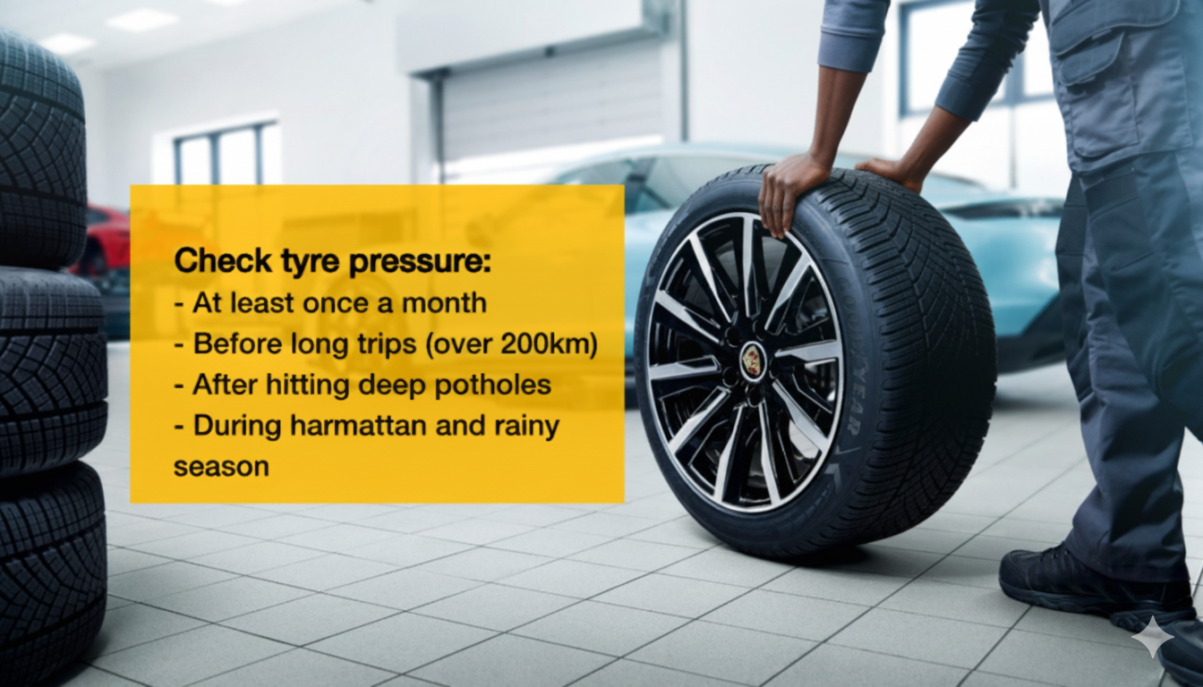 Neglecting regular checks can cause silent air loss, poor grip, and even a tyre burst — especially on Nigeria’s hot and rough roads.